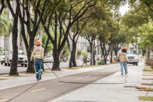 EDESUR coloca cableado soterrado y energiza lámparas del Bulevar de las estrellas, de la Churchill